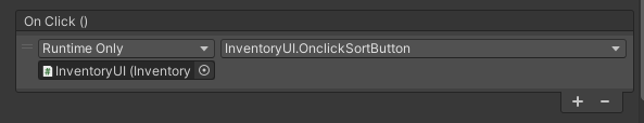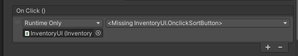 그래서 OnClickSortButton으로 수정하고 실행했는데 버튼이 동작하지 않았다. 그래서 다시 인스펙터로 살펴보니 아래와 같이 되어 있었다.